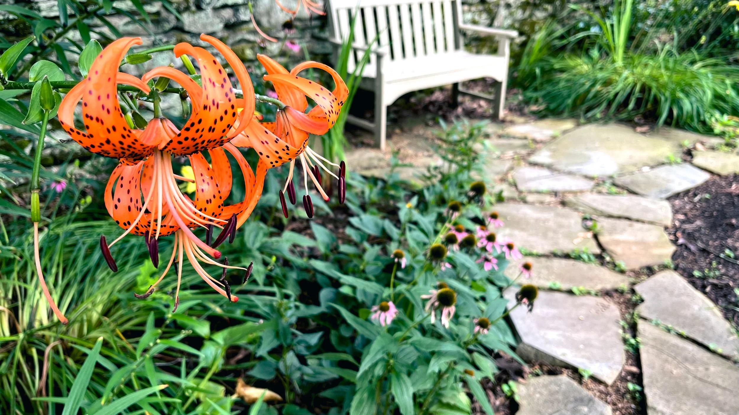 Once Joe Howell’s vegetable garden, this space features 1930s stone walls and the Garden’s rose collection. Bright green lawn is flanked by striking redbud trees, and entrance paths reclaimed from the stone that once bounded the Howell’s raised vegetable beds welcomes visitors to enjoy the garden’s history and its thoughtful renewal.