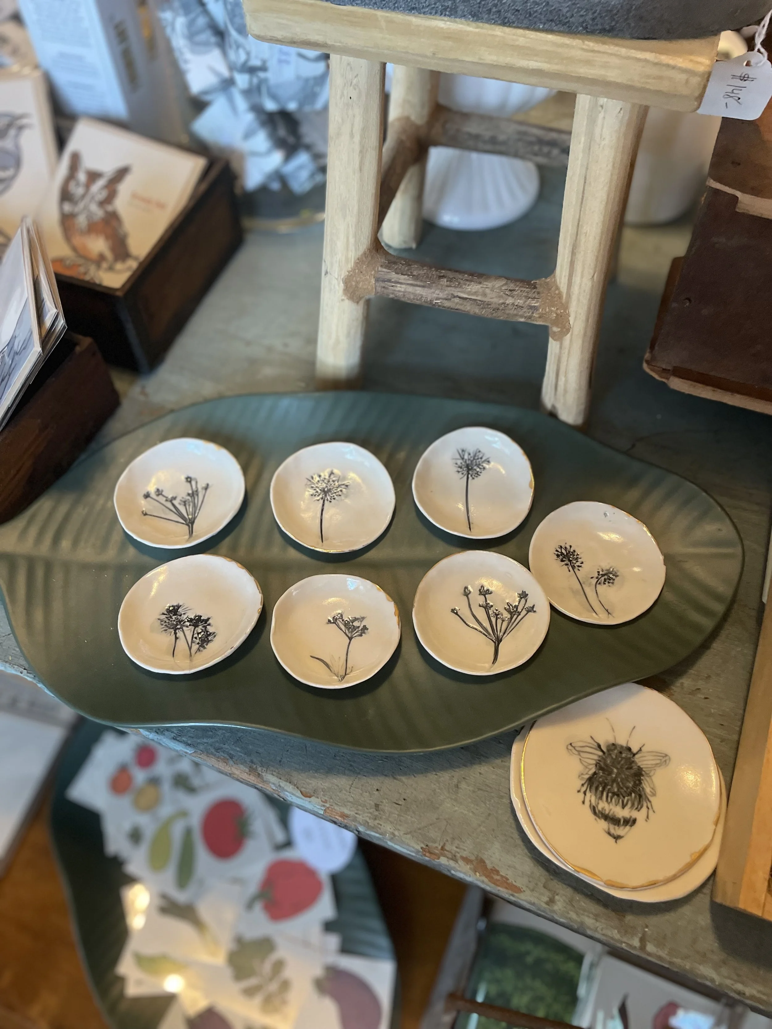 Hand-forged leather and brass treasures, pressed botanical resin pieces, and silver and stone jewelry showcase a blend of artistry and craftsmanship. Each piece is carefully designed to reflect the beauty of nature and the artisan’s connection to the world around them.