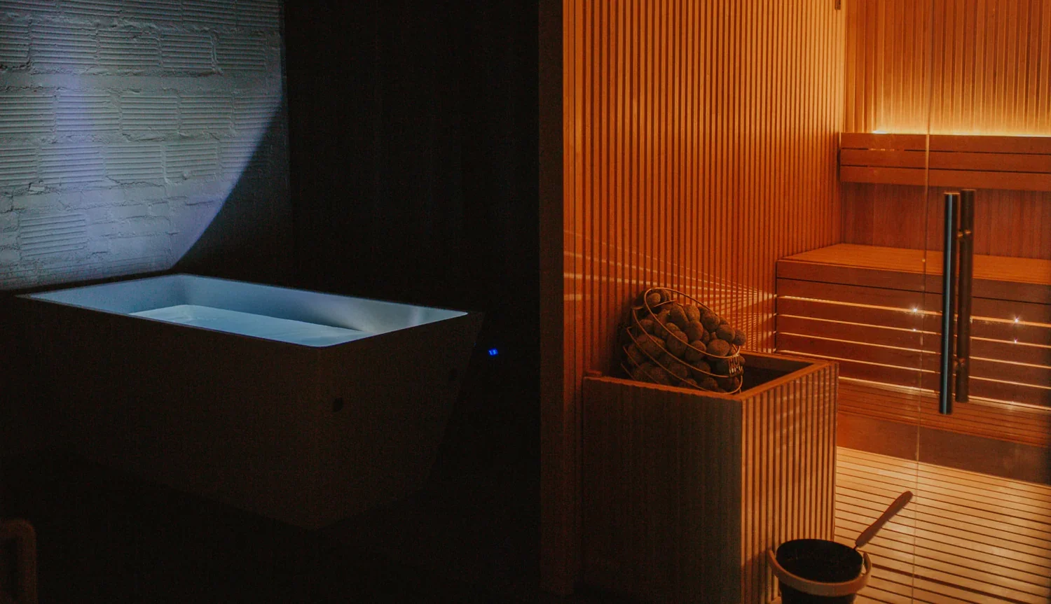 Two-hour, private room booking for up to right (8) people for the large private room with sauna. Heated furniture, private changing room, lockers, private outdoor courtyard, and private in-ground stainless steel cold plunge, plus a tote bag and water bottle.